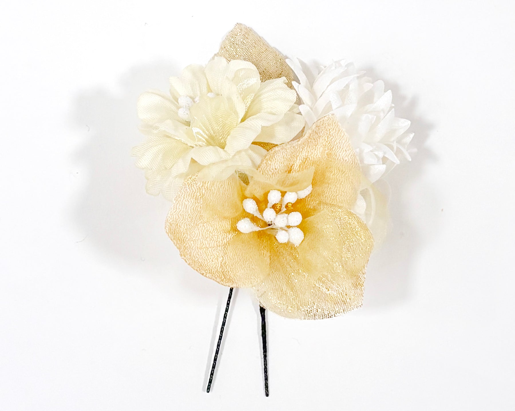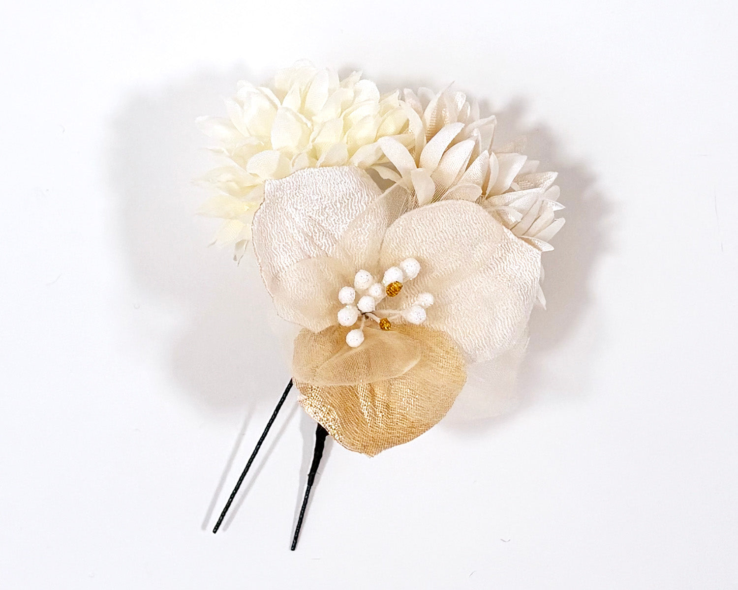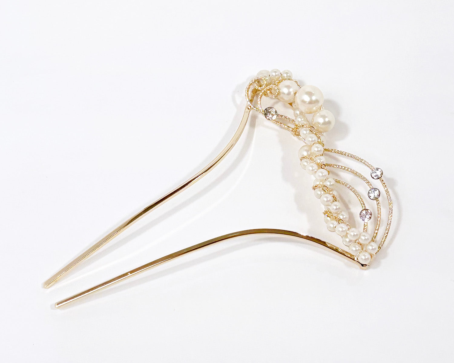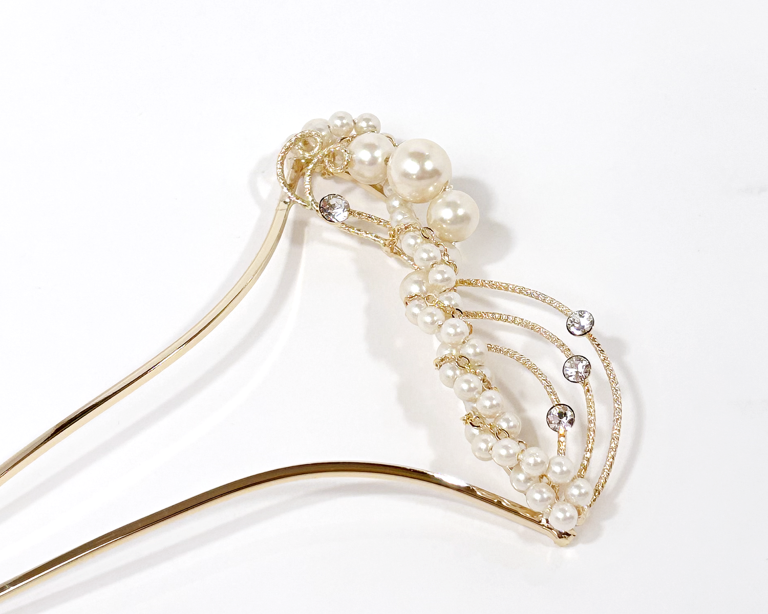 ゴールドの台にパールの組み合わせが高級感漂うかんざしです。