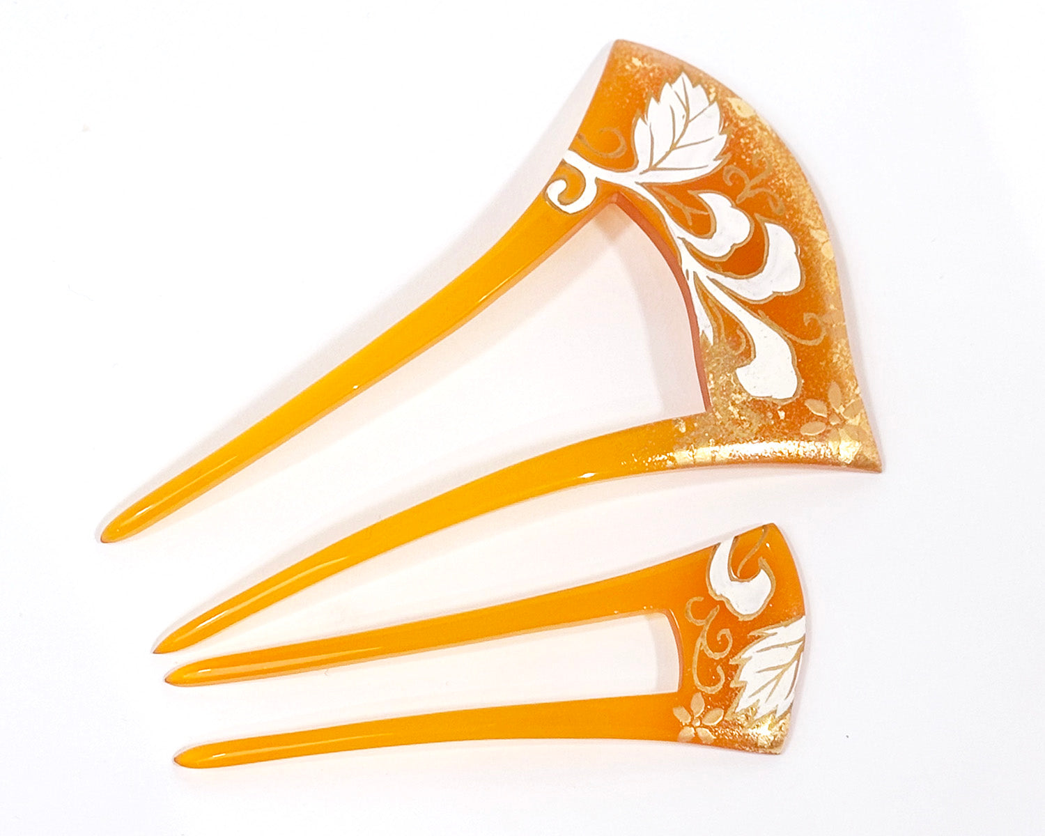 華やかなべっ甲風バチ型のかんざし2本セットです。