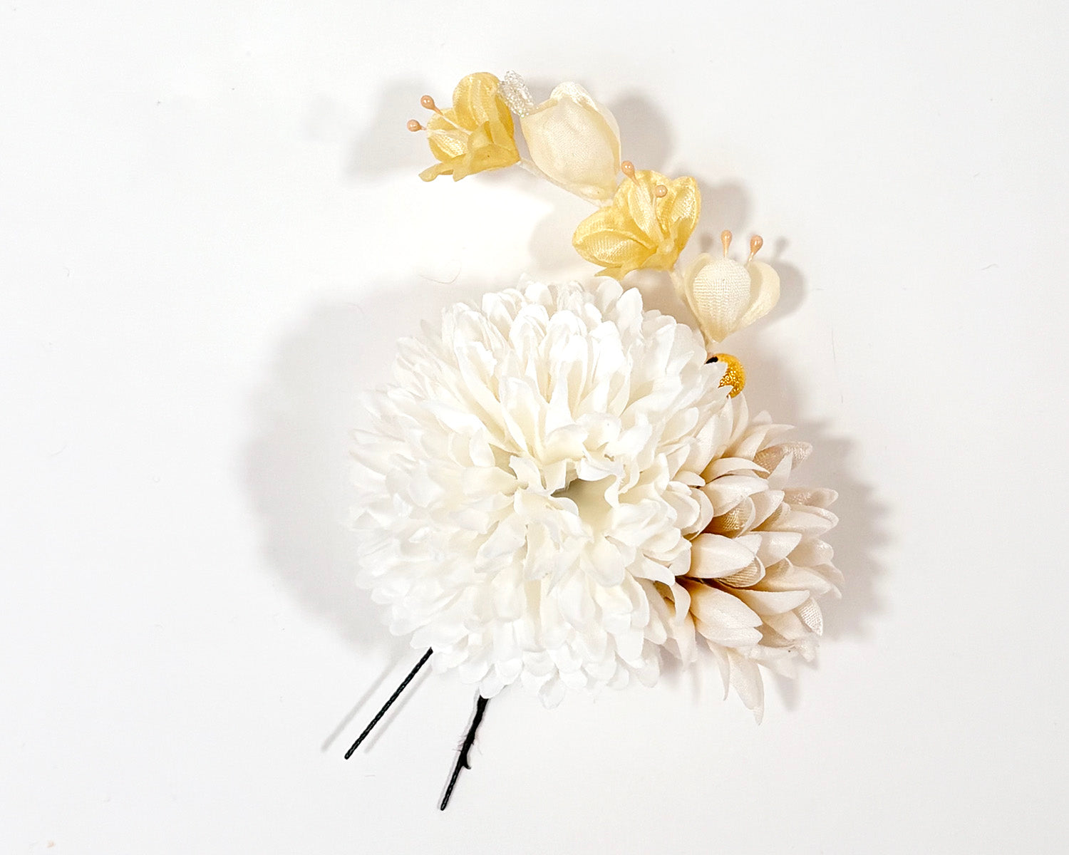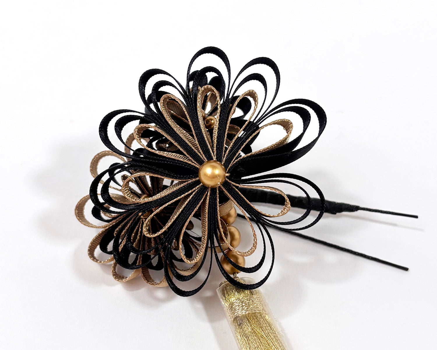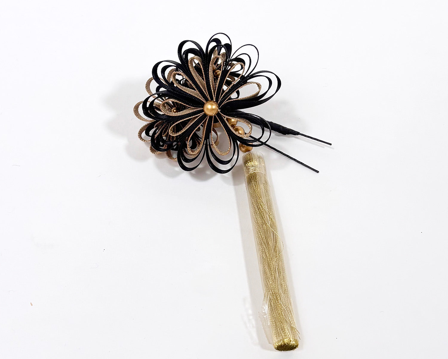 組紐付きの梅菊のコームと房付きのピンがセットになった髪飾りです。