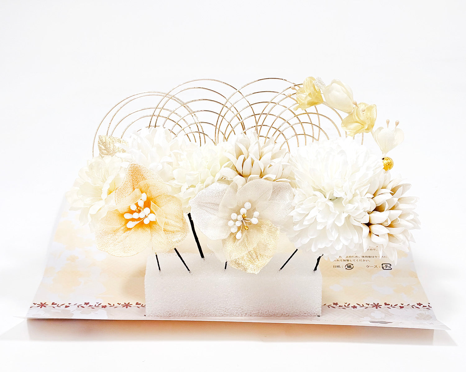 縁にはパールがあしらわれ、和装姿に上品な華やぎを添えてくれます。
