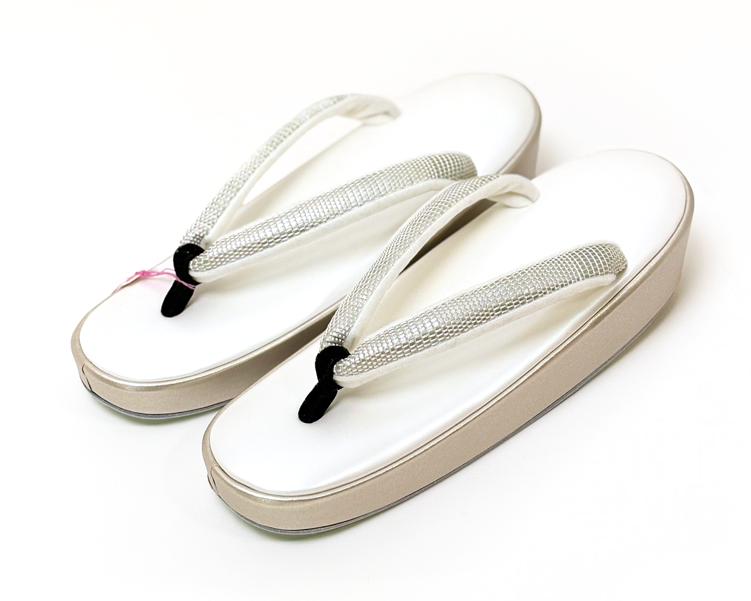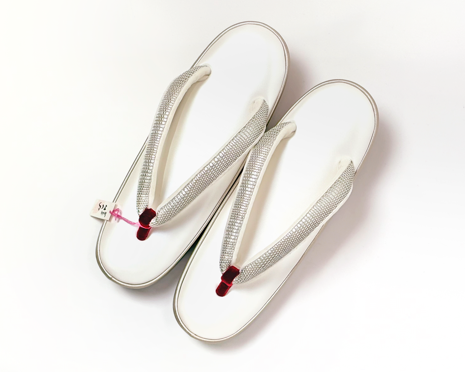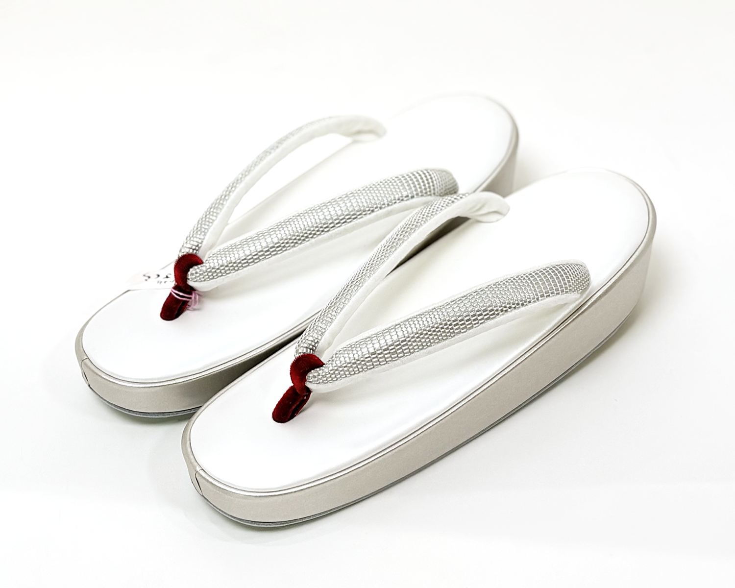 鼻緒 シルバー箔(赤)/台 天:白 巻:薄金