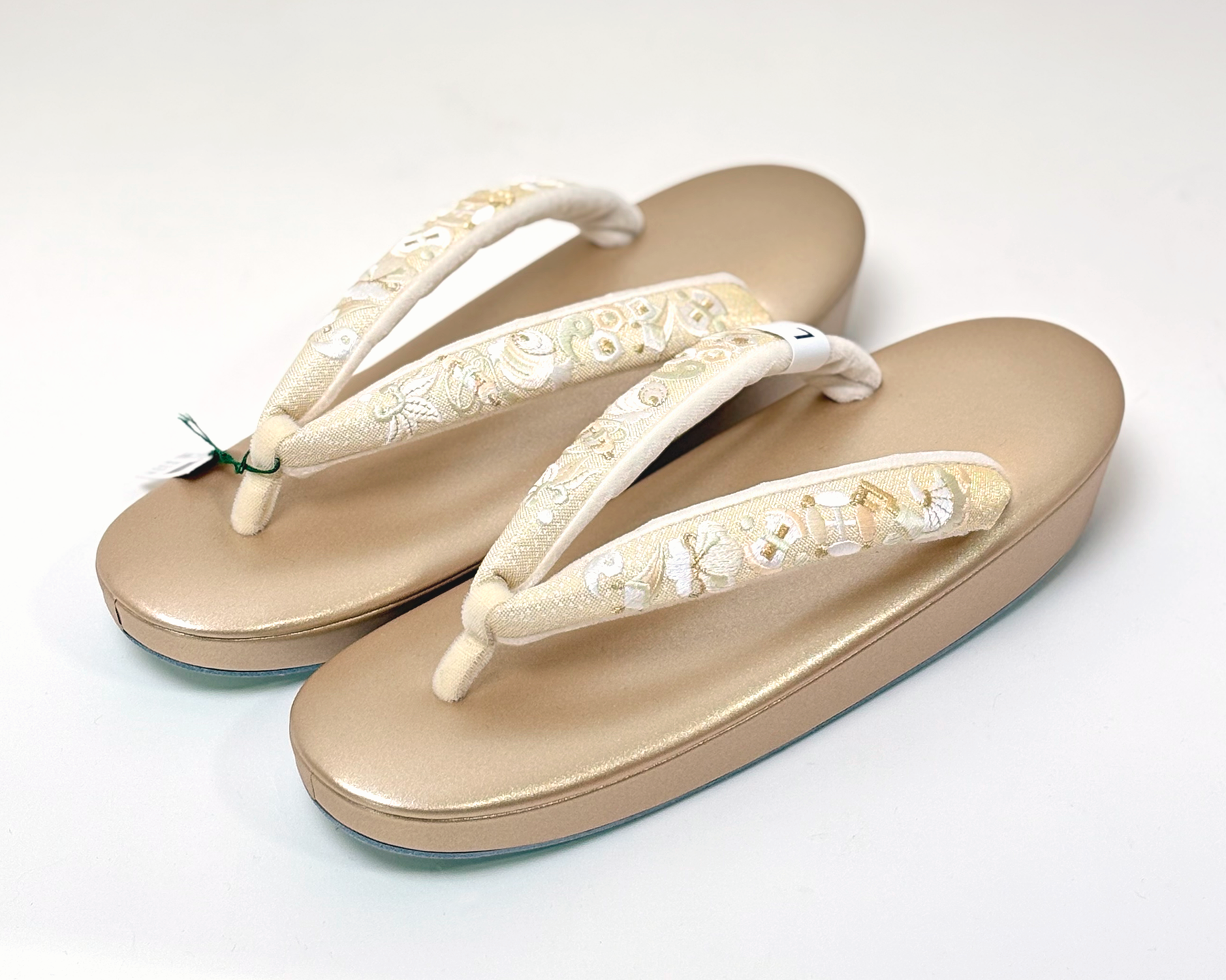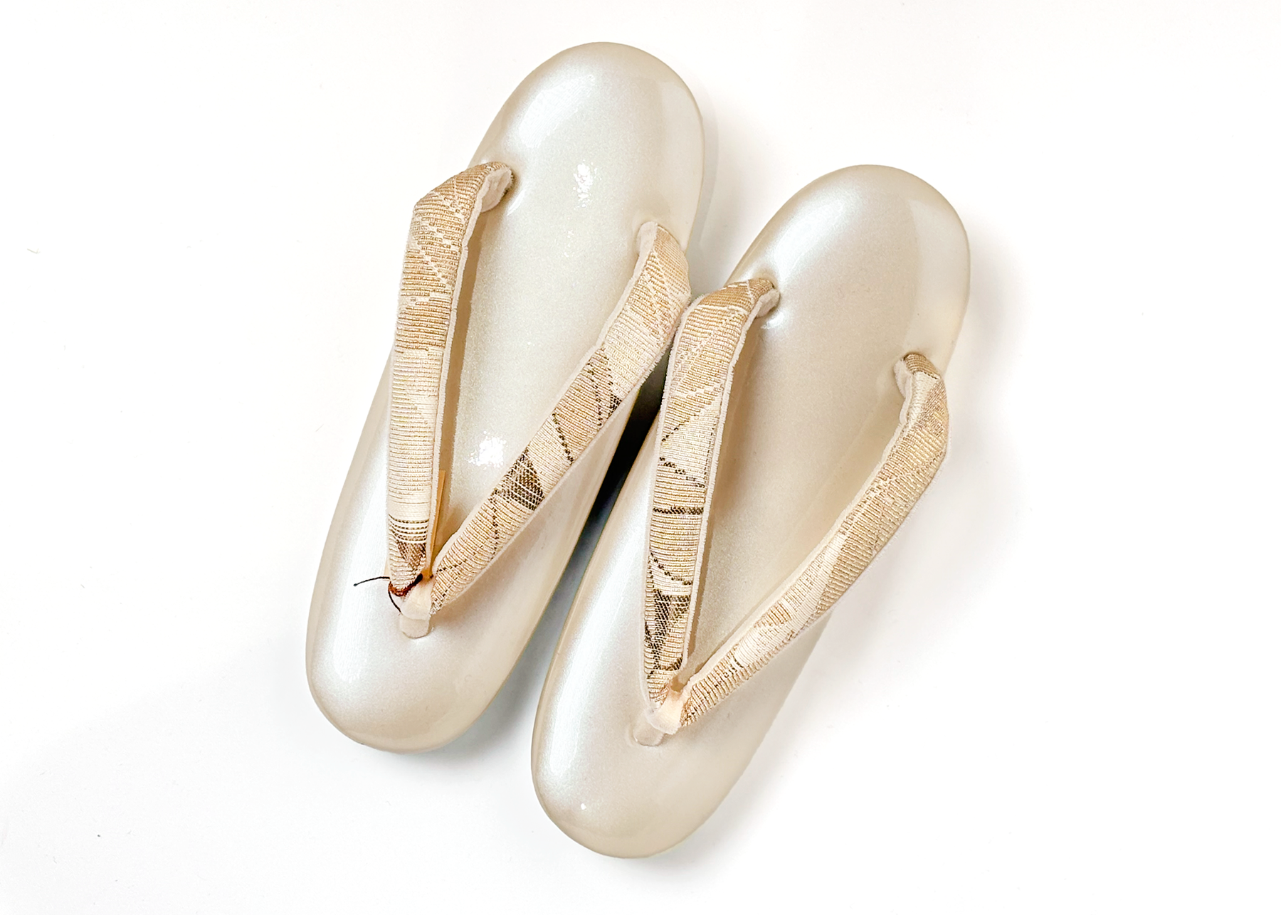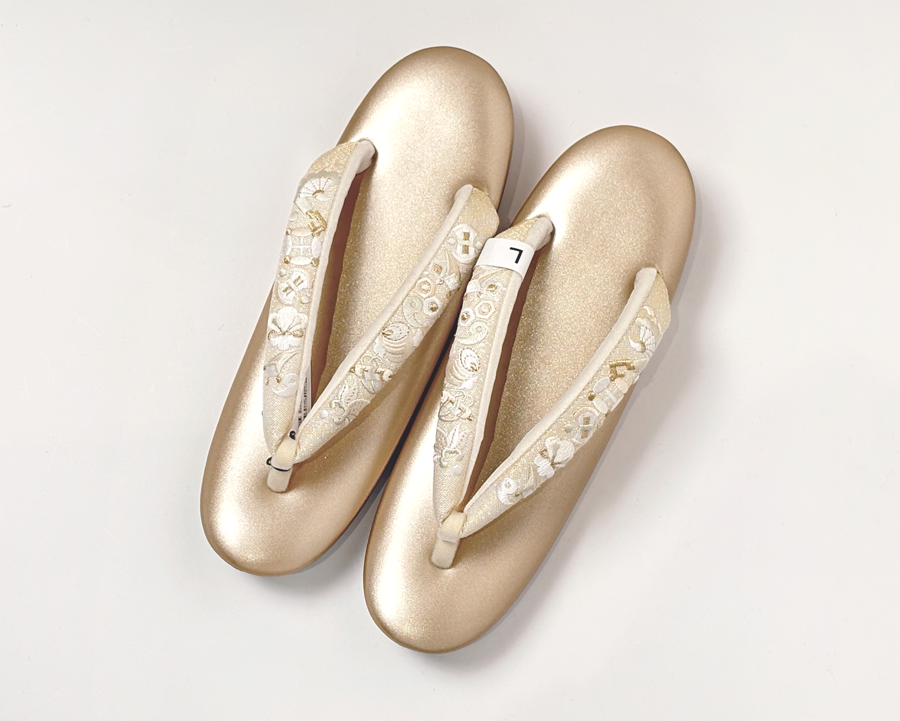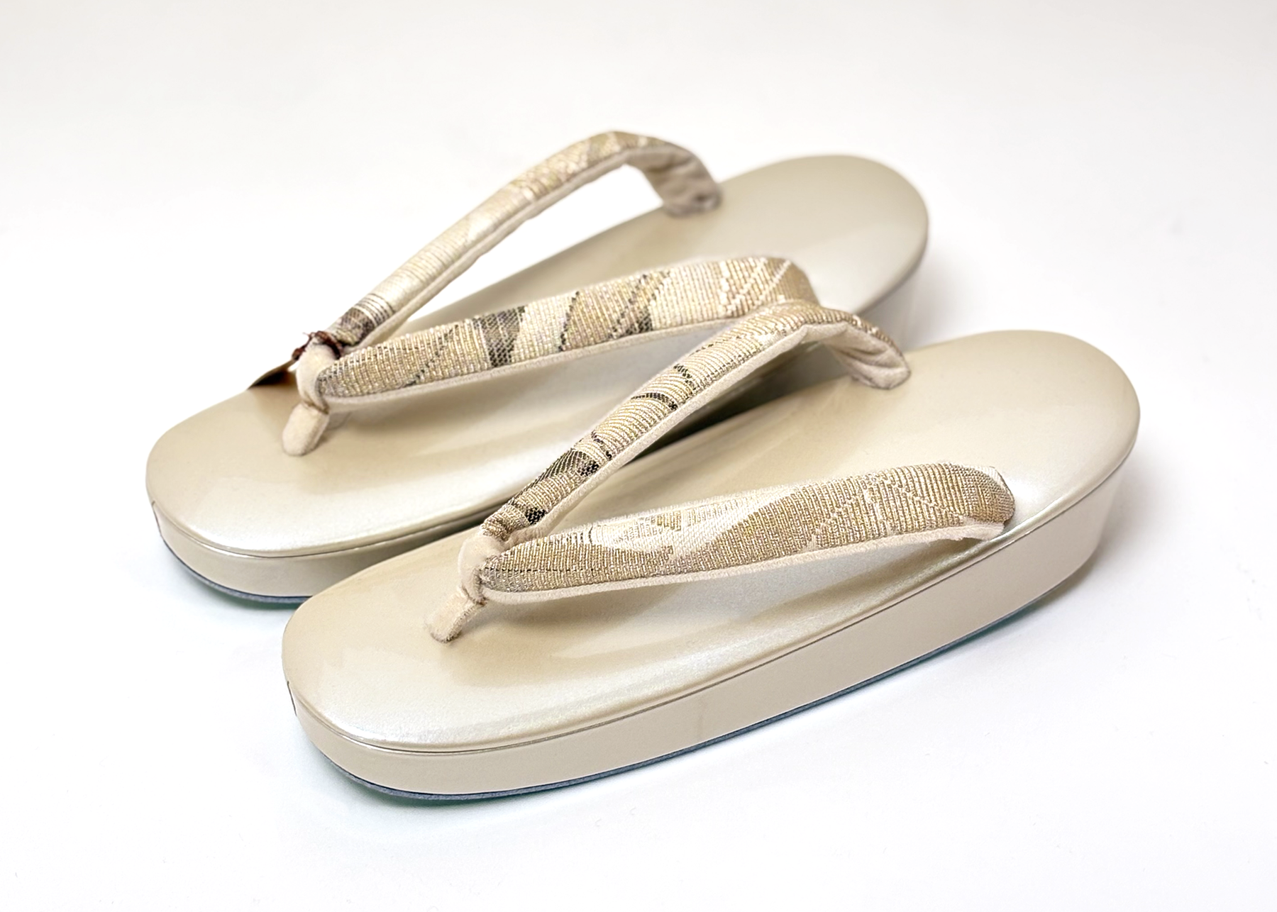 天(足が乗る部分)に清潔感溢れる白、巻(側面)にはシャンパンゴールドというモダンなツートンカラーで、足元に凛とした印象を与えます。